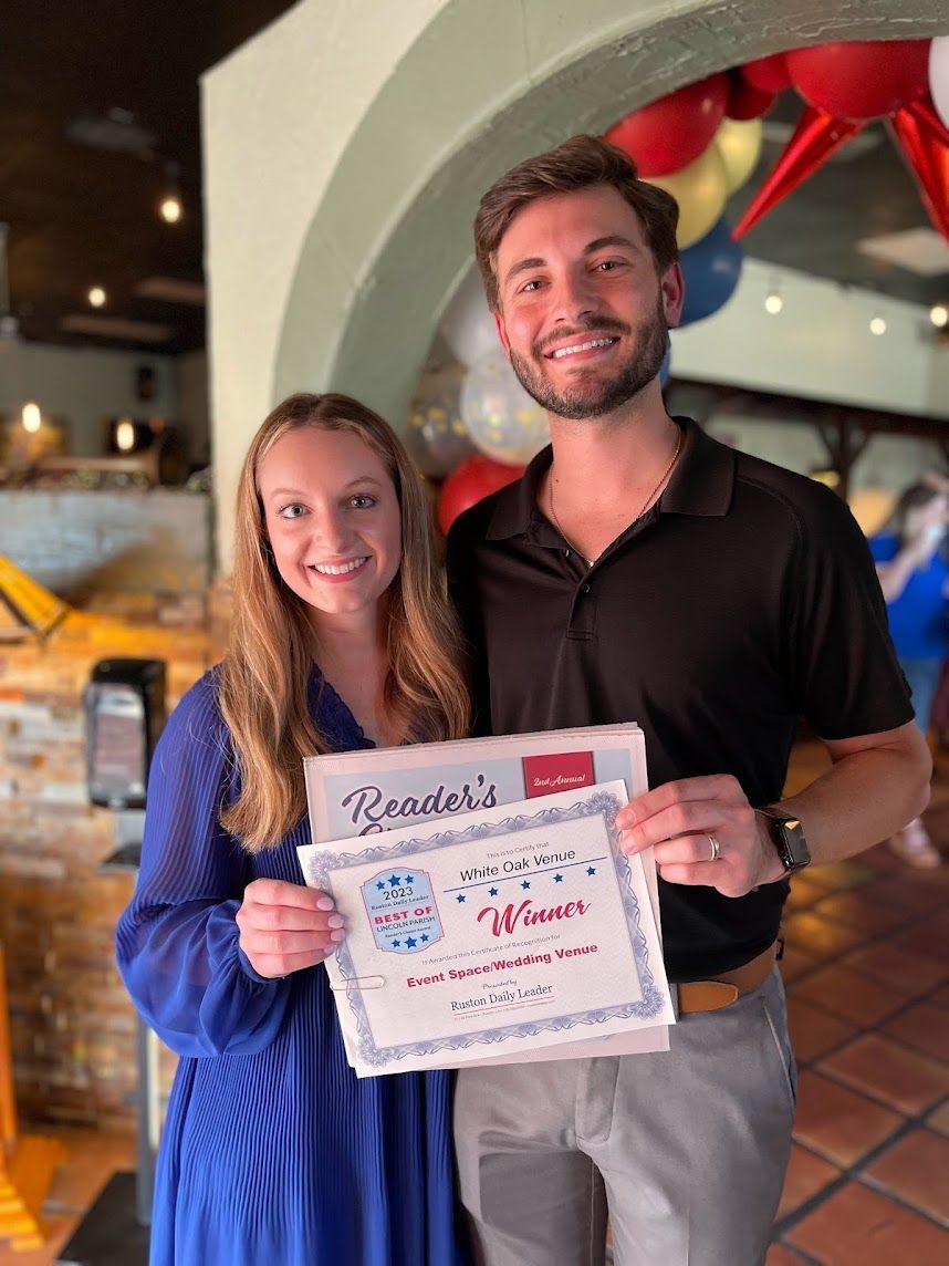 We are Brandon and Jessica Williams and Hunter and Allison Burkhardt, the owners of White Oak! God has blessed us with this gorgeous property and the ability to celebrate life's big moments with you. We look forward to continuing what the the previous owners, Dustin and Alli Brister started. They had a vision for this property and have touched many families through the years.
